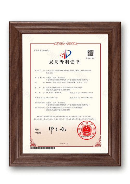 這項專利建立了M624菌株的分子層級鑑別技術,能夠從基因層面精準確認菌株的真實性,是防止混充、確保品種純正的科學保障。