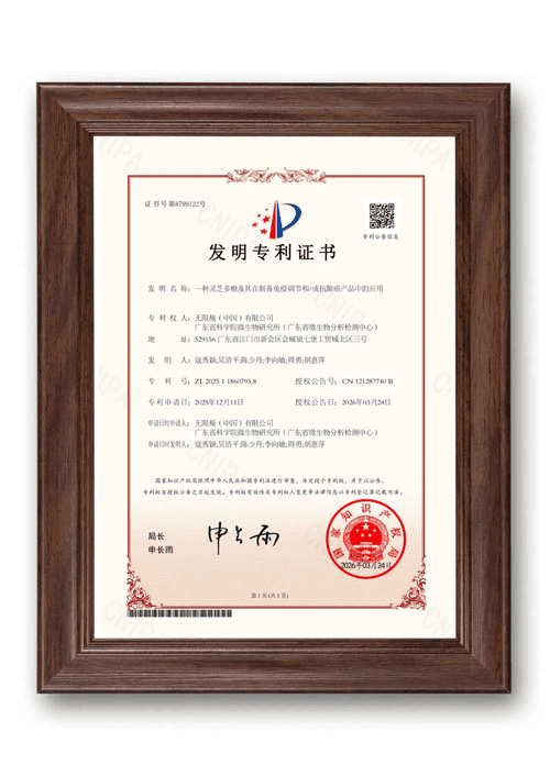 靈芝多醣免疫調節研究專利 《一種靈芝多醣及其在制備免疫調節相關產品中的應用》 專利號:ZL202511860795.8