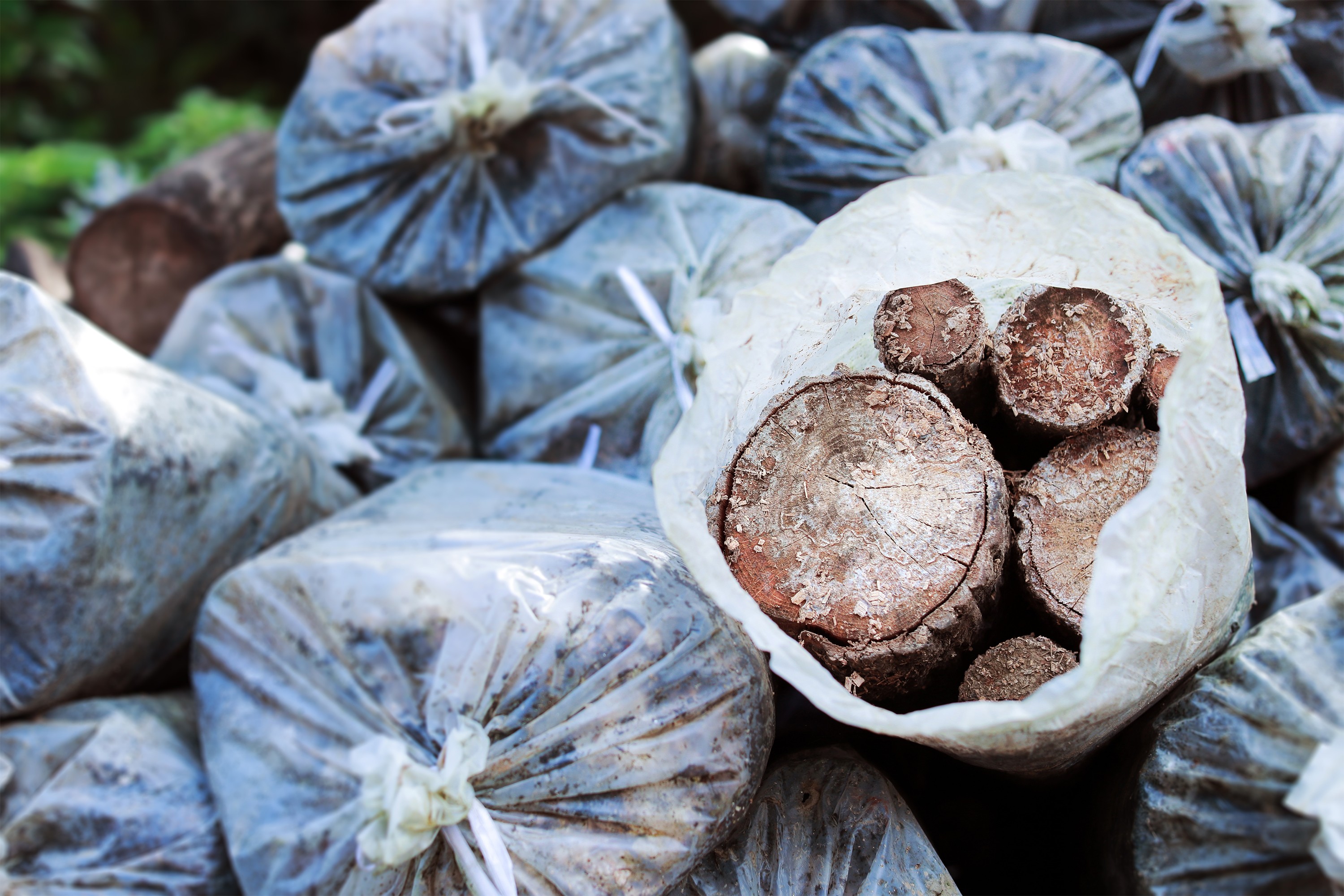 椴木處理標準: 用於接種的椴木統一鋸成30公分長度,接種前須經過100度、持續36小時的徹底滅菌處理,完全冷卻後才能接上優質靈芝菌種。這道程序確保椴木在接種前已完全排除雜菌污染的風險,為靈芝菌絲提供一個潔淨的生長起點。