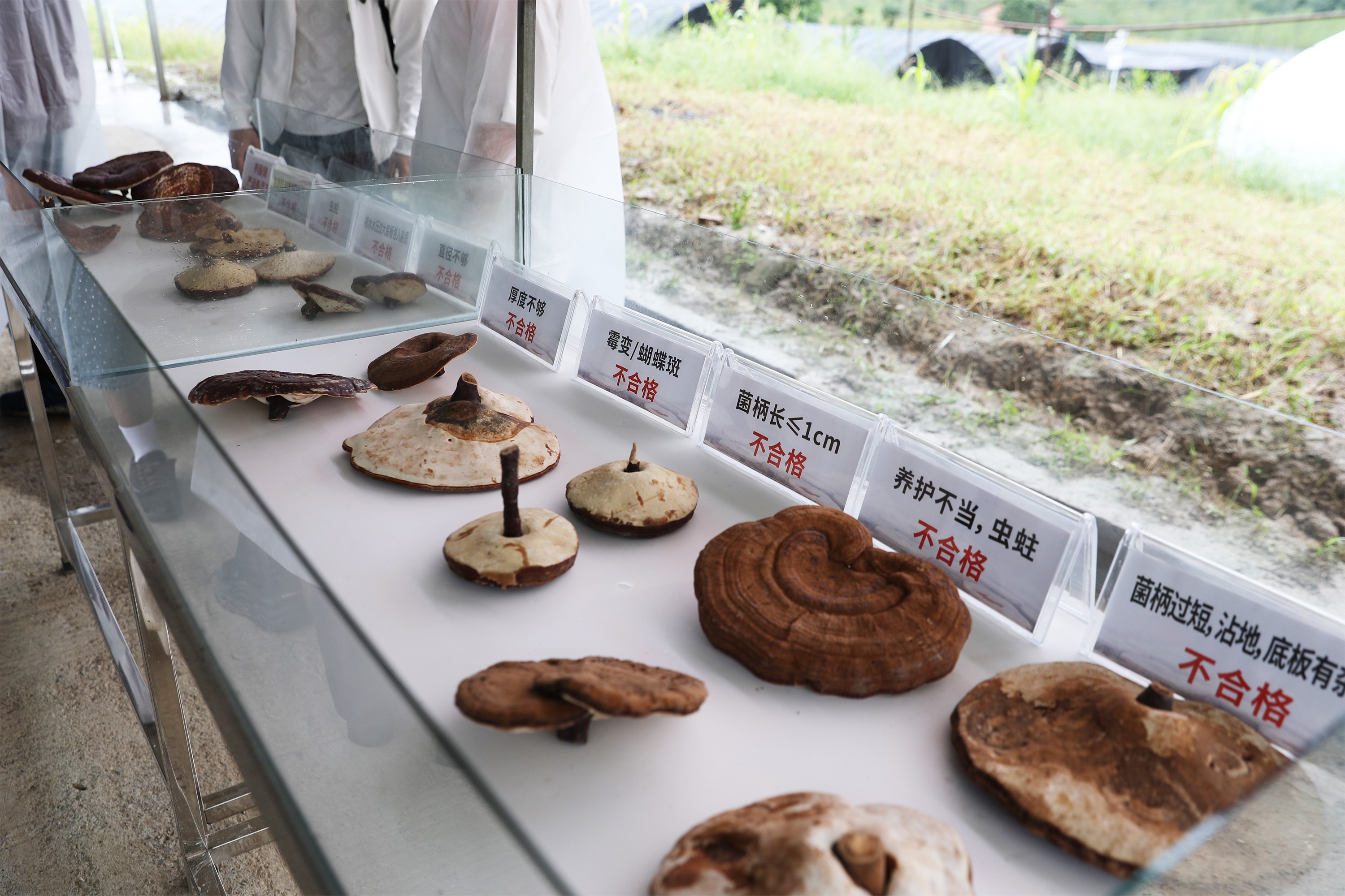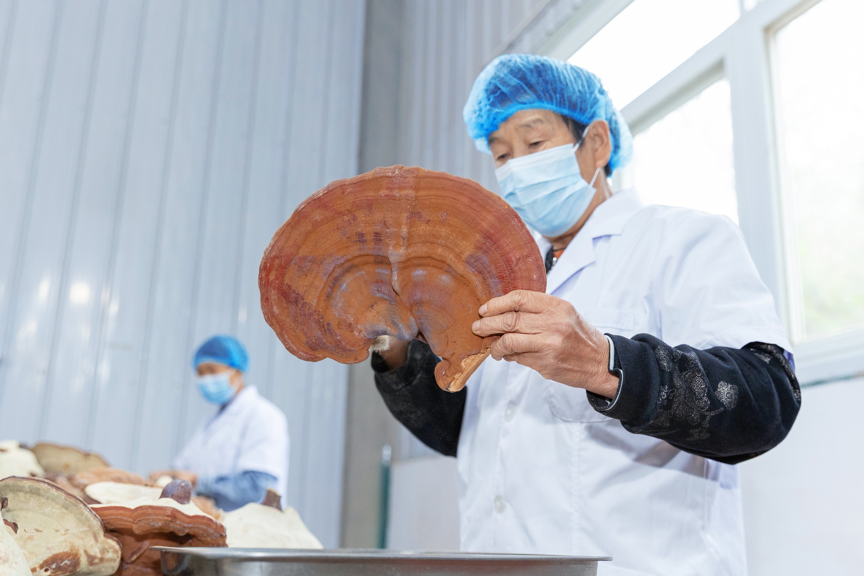 烘乾後的每一朵赤靈芝,都要經過嚴格的人工篩選:
