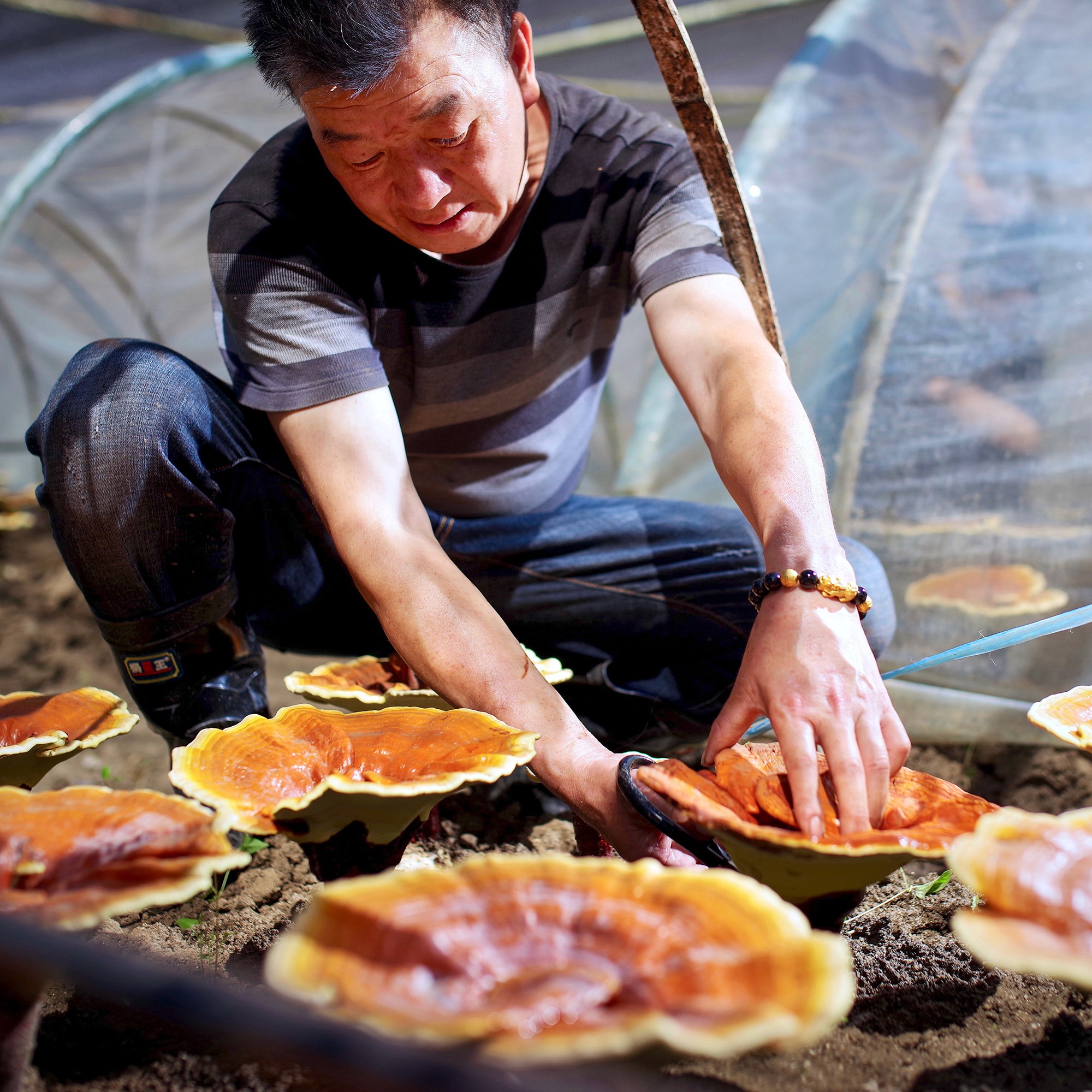 選取來自浙江龍泉的高山椴木栽種靈芝,遵循傳統工法栽培超過8個月,嚴格採收靈芝子實體,只選生長完整、活性飽滿的部分。